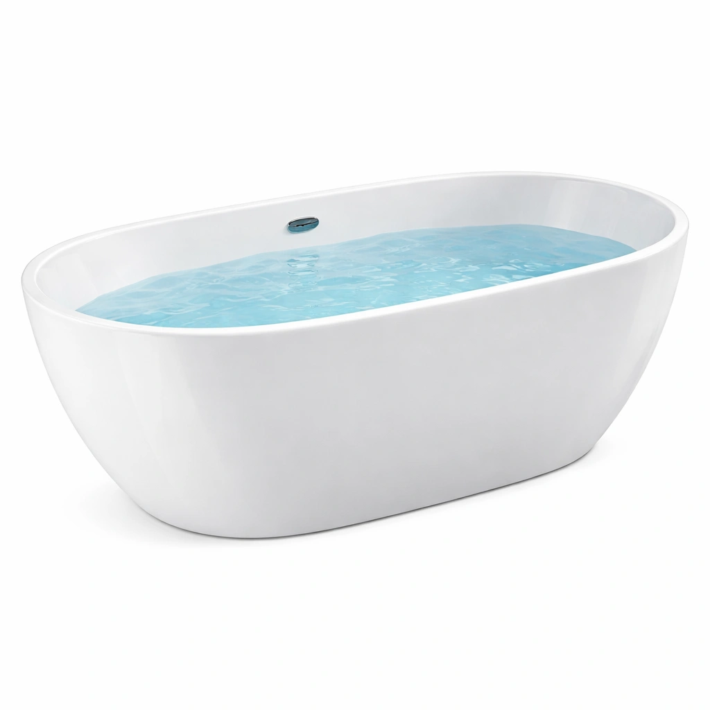 Esta bañera independiente está hecha de acrílico resistente en color blanco. Sus dimensiones son 170 cm de largo, 80 cm de ancho y 60 cm de alto. Tiene una capacidad aproximada de 230 litros y forma ovalada. El peso de la bañera es de 35 kg.