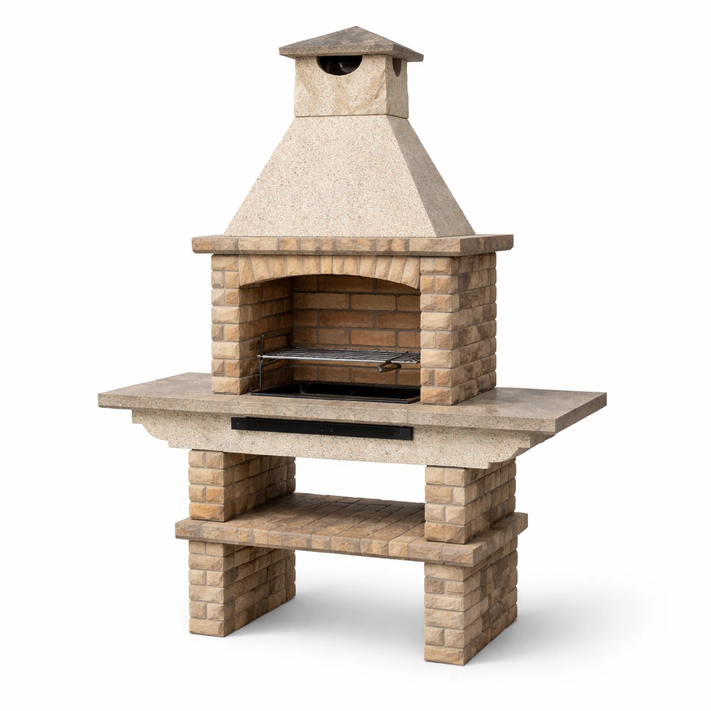 Material: La estructura principal es de piedra artificial y ladrillo refractario en la zona de cocción.
