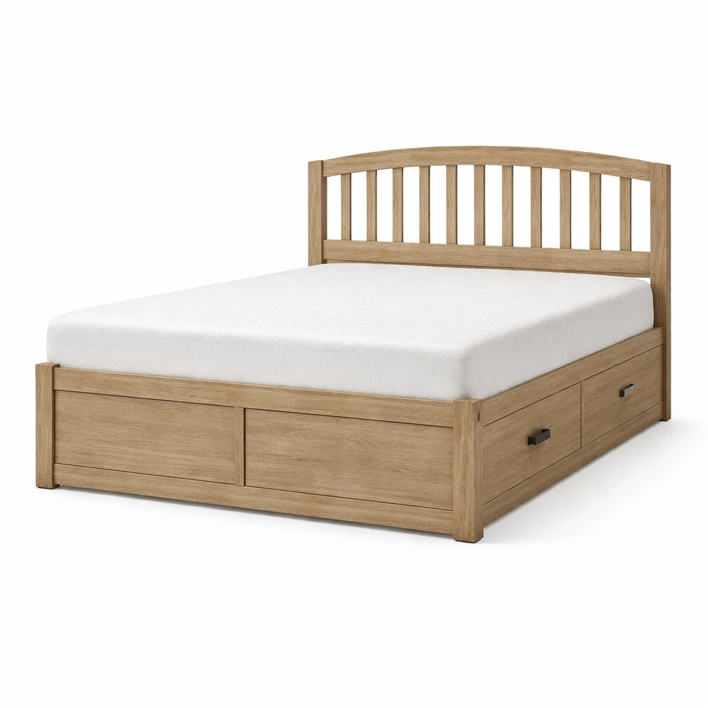 Cama con almacenamiento doble de madera de roble con cajones